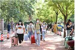 学校严格落实“健康码出示+体温检测+手部及行李消毒+相关材料审核+校园卡刷卡”的入校制度,全体学工干部、学生志愿者等组织返校学生佩戴口罩、有序排队、保持安全间隔距离,依次入校。