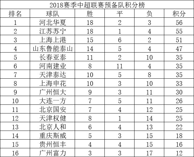 在24日的比赛中,河北华夏9比2大胜权健,拿到一场大胜后,他们的积分达到56分,排名第一位。桂宏上演帽子戏法,埃尔纳内斯和张利峰都是梅开二度。之前结束的一场比赛中,苏宁2比1击败恒大,海米提接张凌峰助攻单刀扳平比分,之后他传中助攻徐春庆包抄空门实现反超。苏宁的积分达到55分,紧追华夏,两队的预备队争冠很激烈。
